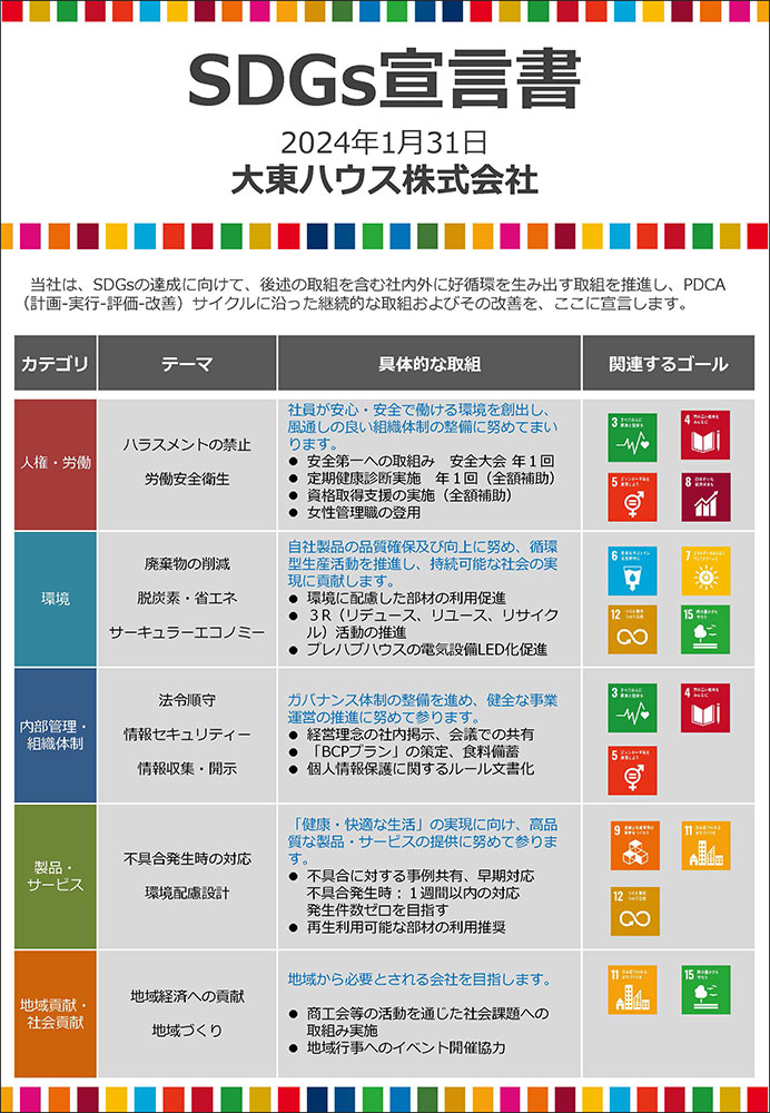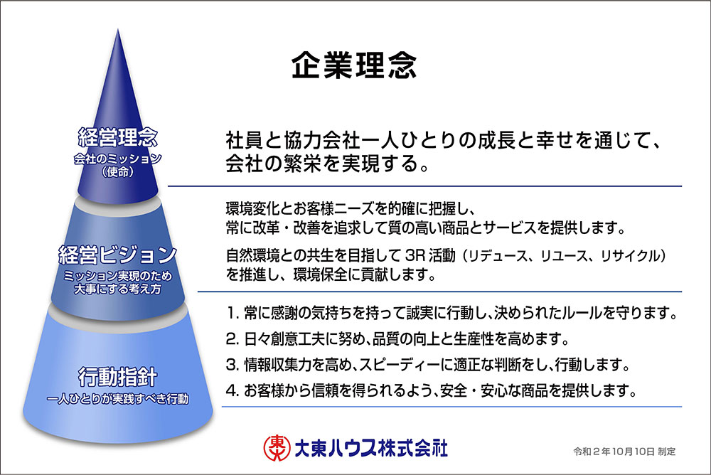 これは、21世紀を迎え、地球環境保全の観点に立ったビジネス形態であり、大東ハウスのポリシーとしております。
